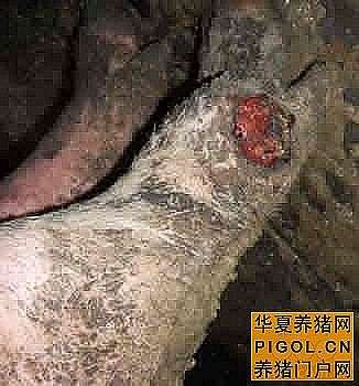 新场水泥圈面,由于未经清洗消毒,而显碱性或具有腐蚀性,易导致猪的肢蹄受损而裂蹄。地面坡度过小,栏舍过于潮湿,猪蹄长期泡在水中,蹄壳变软,耐压程度大大降低,加上湿地太滑,蹄部被损伤的机会增大;坡度过大则可导致猪只行走不稳,影响猪蹄结实度,引起肢势不正、卧地等缺陷。