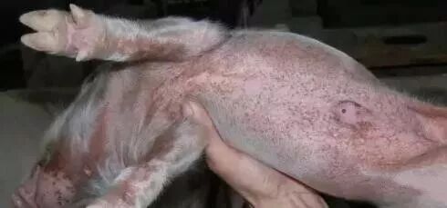 症状小猪通常在感染后4~6天发病。开始时,皮肤排出物多,呈红色或铜色。首先在腋部和肋部出现薄的、灰棕色片状渗出物,富含脂质,3~5天扩展到全身。患猪背毛粗乱,可出现口腔溃疡,蹄球部角质脱落。食欲不振和脱水是本病主要特征。发病严重的猪,体重迅速减轻,并在24小时内死亡,通常在3~10天内死亡。病猪不出现瘙痒,发热也不常见。同窝仔猪发病表现和严重程度不同。耐过猪生长明显变慢。