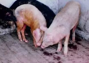 【临诊症状】 最常见的症状是出现程度不同的腹泻。一般是先拉软粪,渐变为黄色稀粪,内混粘液或带血。病情严重时所排粪使呈红色糊状,内有大量粘液、出血块及脓性分泌物。有的拉灰色、褐色甚至绿色糊状粪,有时带有很多小气泡,并混有粘液及纤维伪膜。病猪精神不振、厌食及喜饮水、拱背、脱水、腹部卷缩、行走摇摆、用后肢踢腹,被毛粗乱无光,迅速消瘦,后期排粪失禁。肛门周围及尾根被粪便沾污,起立无力,极度衰弱死亡。大部分病猪体温正常。慢性病倒,症状轻,粪中含较多粘液和坏死组织碎片,病期较长,进行性消瘦,生长停滞。