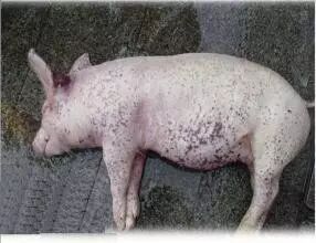 经过专家们的多年研究发现,猪圆环病主要有4种表现形式,即断奶仔猪多系统衰竭综合症(初生仔猪出现神经症状,俗称的抖抖病),猪皮炎肾炎综合症(断奶仔猪皮肤出现红紫色病变斑块,其中,常见在猪的后躯上),怀孕母猪繁殖障碍(母猪子宫感染,产木乃伊胎,或者是没有任何规律性的流产,以及弱仔等)以及增生性坏死间质性肺炎(保育猪发生弥漫性间质肺炎)。因此,目前圆环病仅靠症状,病变难以进行确诊,只能依靠实验器进行诊断。