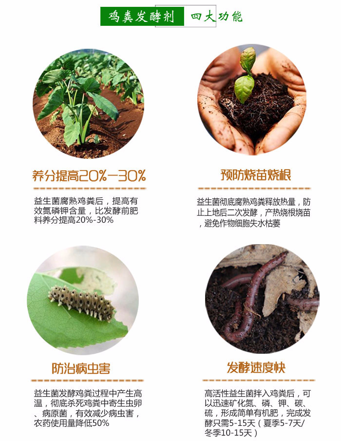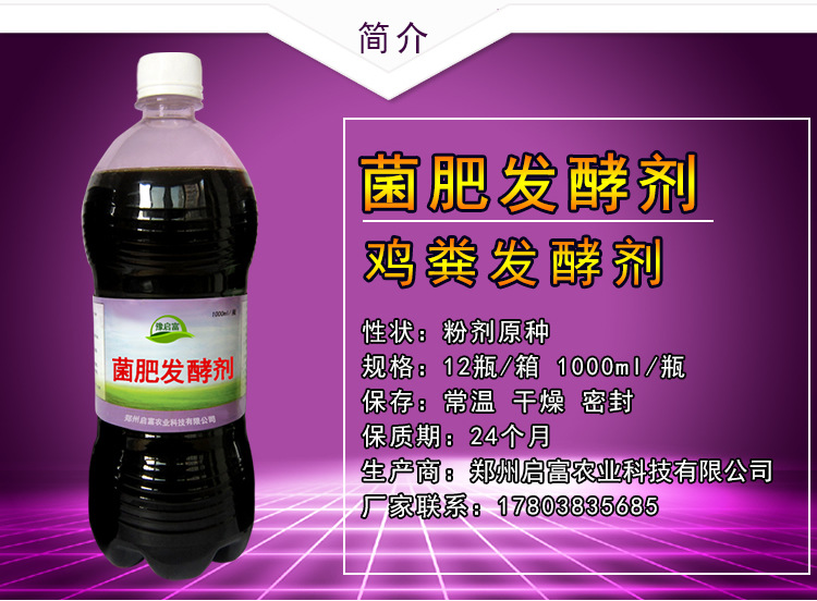 郑州启富公司生产的菌肥发酵剂(鸡粪发酵剂),大公司,老厂家,是启富公司研究团队,经过数年实践经验,研发出的微生物菌剂产品,含菌量高,发酵腐熟快,可以消除鸡粪中的有害病菌、细菌,提高鸡粪有机肥的养分。鸡粪发酵剂厂家订购咨询热线:178-0383-5685