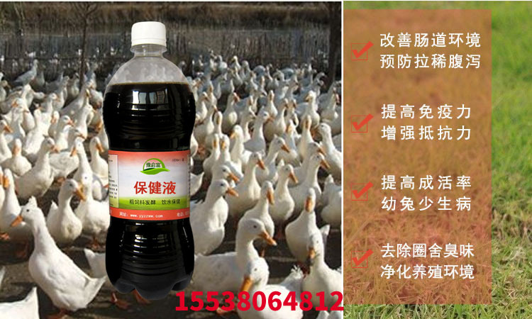 养殖上运用生物制剂已经被充分肯定,不仅能够提高对饲料的利用率,还能够有效改善养殖环境。鸭子的养殖运用有益微生物技术其实更迫切需要。微生物制剂在鸭鹅养殖上运用后能够减低提高消化吸收率节省饲养成本、能够改善鸭子肠道菌群平衡,调节肠胃预防拉稀,有效提高动物的免疫力从而减少发病、提高鸭子肉蛋产品品质,从而提高经济效益,也是在现有饲料禁用抗生素下理想的替代选择方案。 豫启富em菌保健液(养鸭专用em菌液)咨询订购电话15538064812(微信同此号)