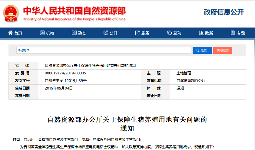 重磅消息!9月4日,自然资源部办公厅发文表示加大政策支持力度,保障生猪养殖用地需求。 值得注意的是,文件指出生猪养殖用地不需办理建设用地审批手续,在不占用永2019-09-09 10:04:09- 重磅消息!9月4日,自然资源部办公厅发文表示加大政策支持力度,保障生猪养殖用地需求。 值得注意的是,文件指出生猪养殖用地不需办理建设用地审批手续,在不占用永2019-09-10 11:37:08