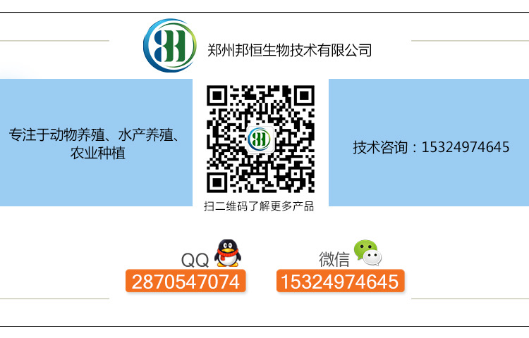 3.发酵饲料:郑州邦恒养殖EM菌液可以发酵豆渣、泔水(潲水)、酒糟、饼粕等粗饲料,改善粗饲料的营养价值及口感。发酵过后的粗饲料可以代替60%的精饲料,大大节约了养殖成本。