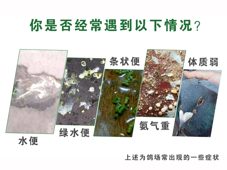 现在比较流行绿色养殖,预防大于治疗,前期预防做的好了,后期鸽子生病就很少,推荐你使用益生菌喂鸽子不仅调理肠胃效果好,而且不影响鸽子生长,能提高免疫力,更重要的是不管是对赛鸽还是肉鸽乳鸽,都是没有危害的,可以放心用!