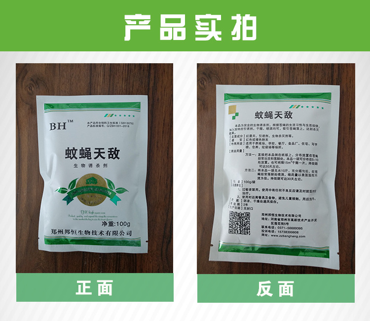 本品为安全的生物诱杀剂,无毒无副作用,在养殖圈舍可放心使用,对动物无二次伤害,成本低,一袋可以干撒百十平米或者兑水10斤喷洒,15元一包,欢迎大量采购! |