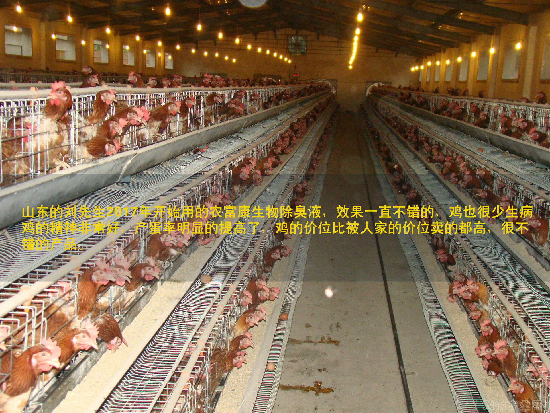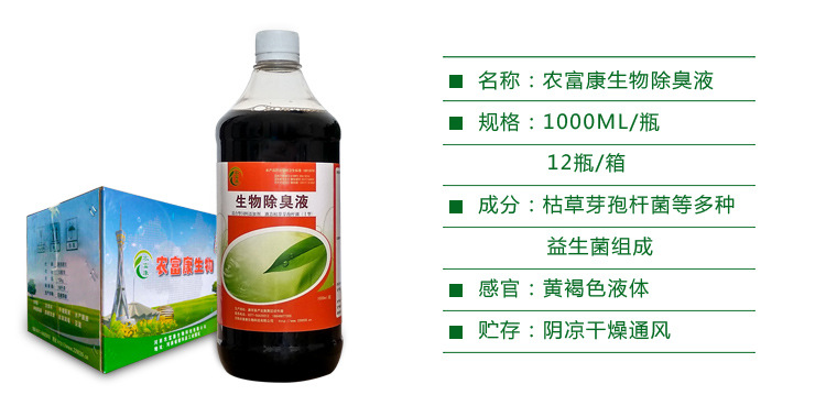 农富康生物除臭液是微生物制剂,益生菌类产品对鸡以及鸡仔没有任何的危害,可以带猪一起使用,是益生菌类除臭气的好帮手,是养鸡场除臭气的首选,农富康生物除臭液一箱12瓶,一瓶1公斤,一瓶兑50公斤的水稀释后可以喷洒300平方,除臭见效快,效果持久。养鸡场除臭液就用农富康生物除臭液。农富康厂家直销 量大价优 全国订货热线:136-8382-3726 (微信-同号)贺经理