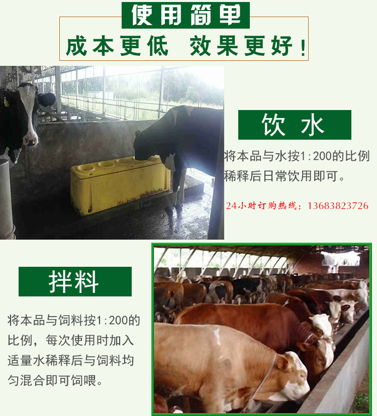 优势2.养牛饮水保健液长期使用防病促长,增重快,牛的肉质好,降低牛粪便的臭味。