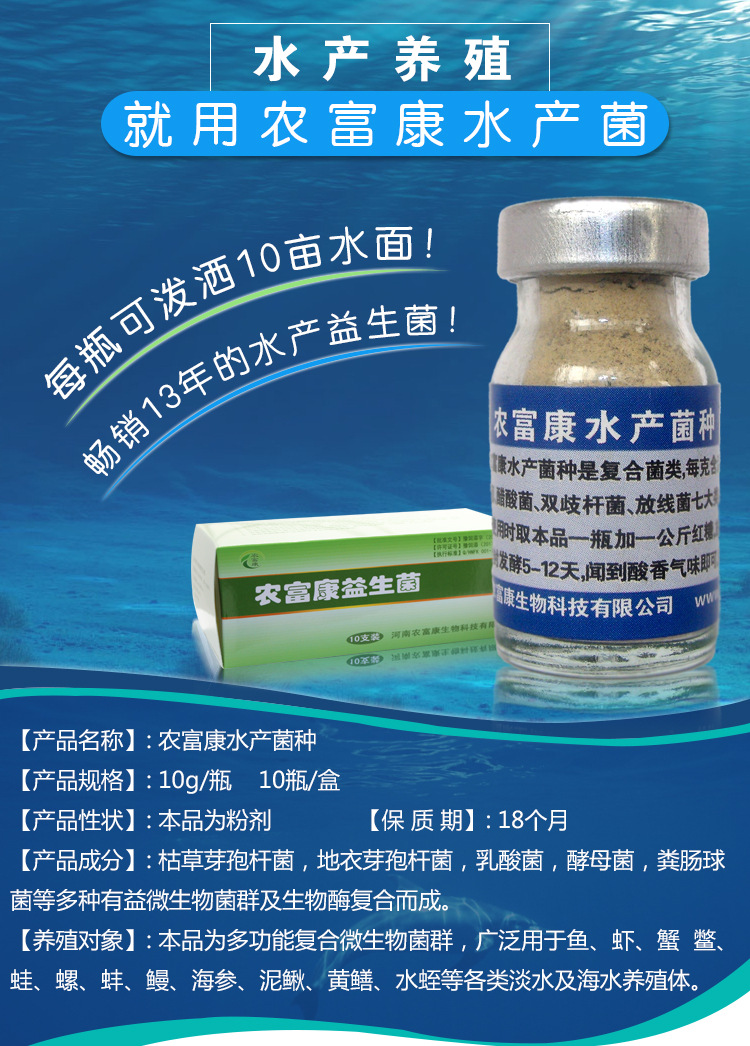 鱼塘调水em菌微生物制剂益生菌类产品,主要通过菌群的分解水体的过多有机质,产品成分主要是有枯草芽孢杆菌,地衣芽孢杆菌,粪肠球菌,光合作用菌,放线菌,酵母菌,乳酸菌等多种菌群配置而成,可以带鱼一起使用,不仅对于没有坏处,还可以预防鱼的肠道疾病,所以鱼塘调水的em菌选择的时候一定要选择资质齐全,做的时间长的厂家,这种公司技术成熟,是经过多年的客户真实的反馈,所有新客户可以放心的使用,有什么技术问题可以随时咨询。农富康厂家直销 全国订货热线:136-8382-3726 (微信-同号)