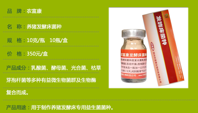农富康发酵床菌种属于原菌,多种有益菌群混合而成,有益菌含量高,纯度强,繁殖速度快,制成的发酵床可以持续用5年左右,间接地提高了养猪户的经济效益。