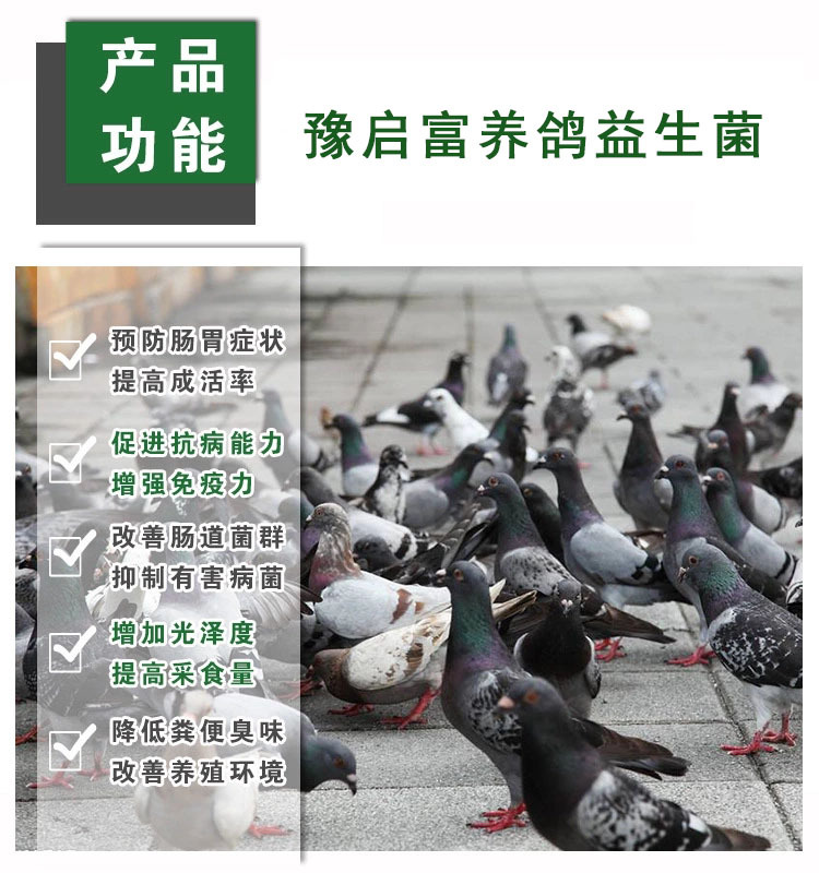 使用豫启富保健液益生菌(鸽用益生菌)养殖鸽子的好处: