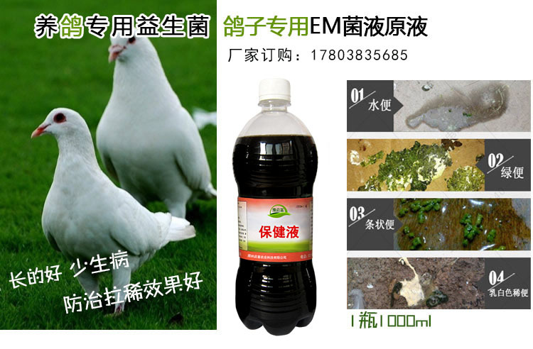 用豫启富保健液益生菌(鸽用益生菌)长期喂鸽,有效预防雏鸽白痢、大肠杆菌等疾病的发生,保肝护肾,调节机体内分泌,提高抵抗力,大大提高雏鸽子成活率,无任何毒副作用。